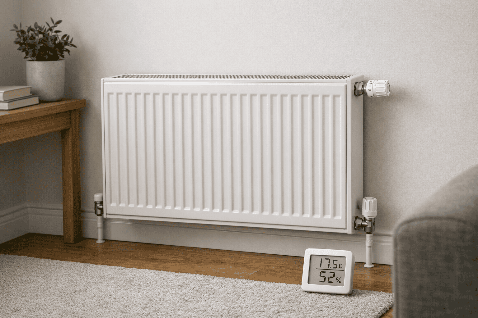 In this scenario, the radiator itself is not faulty. The pattern reflects thermostat placement and distribution imbalance. Correcting flow distribution and reviewing thermostat position often produces better stability than increasing setpoint.